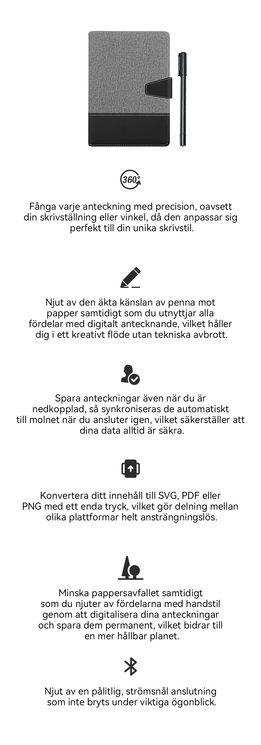 - Miljövänlig: Återanvändbar och hållbar – njut av att skriva samtidigt som du minskar pappersavfallet.