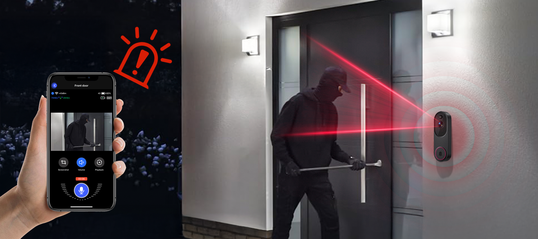 - Smidig fjärråtkomst – Se och kommunicera med personer utanför din dörr när som helst och var som helst via din telefon.