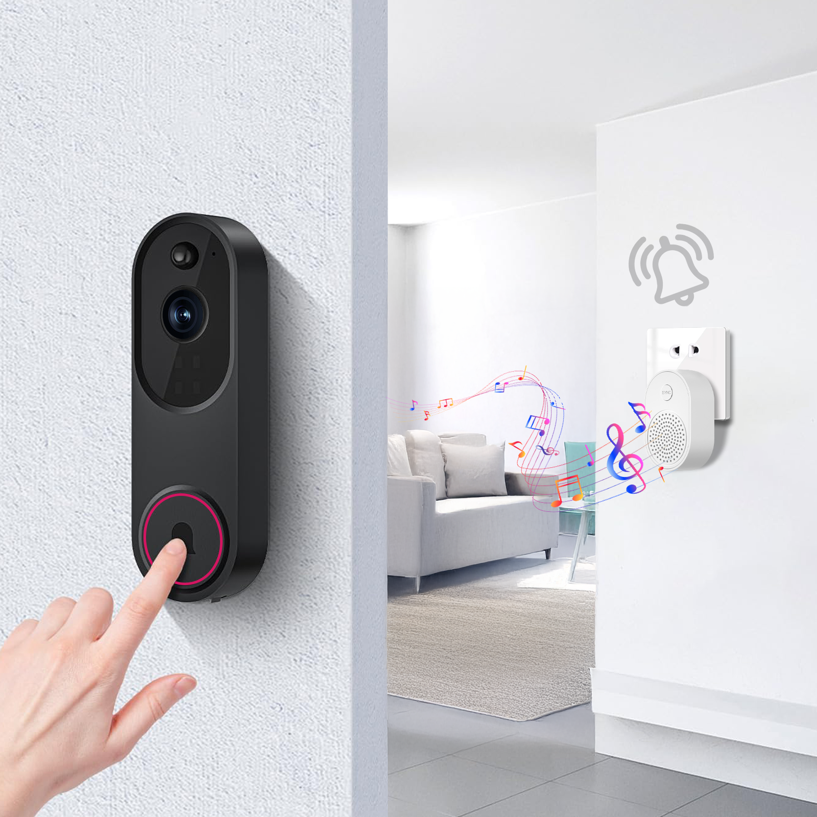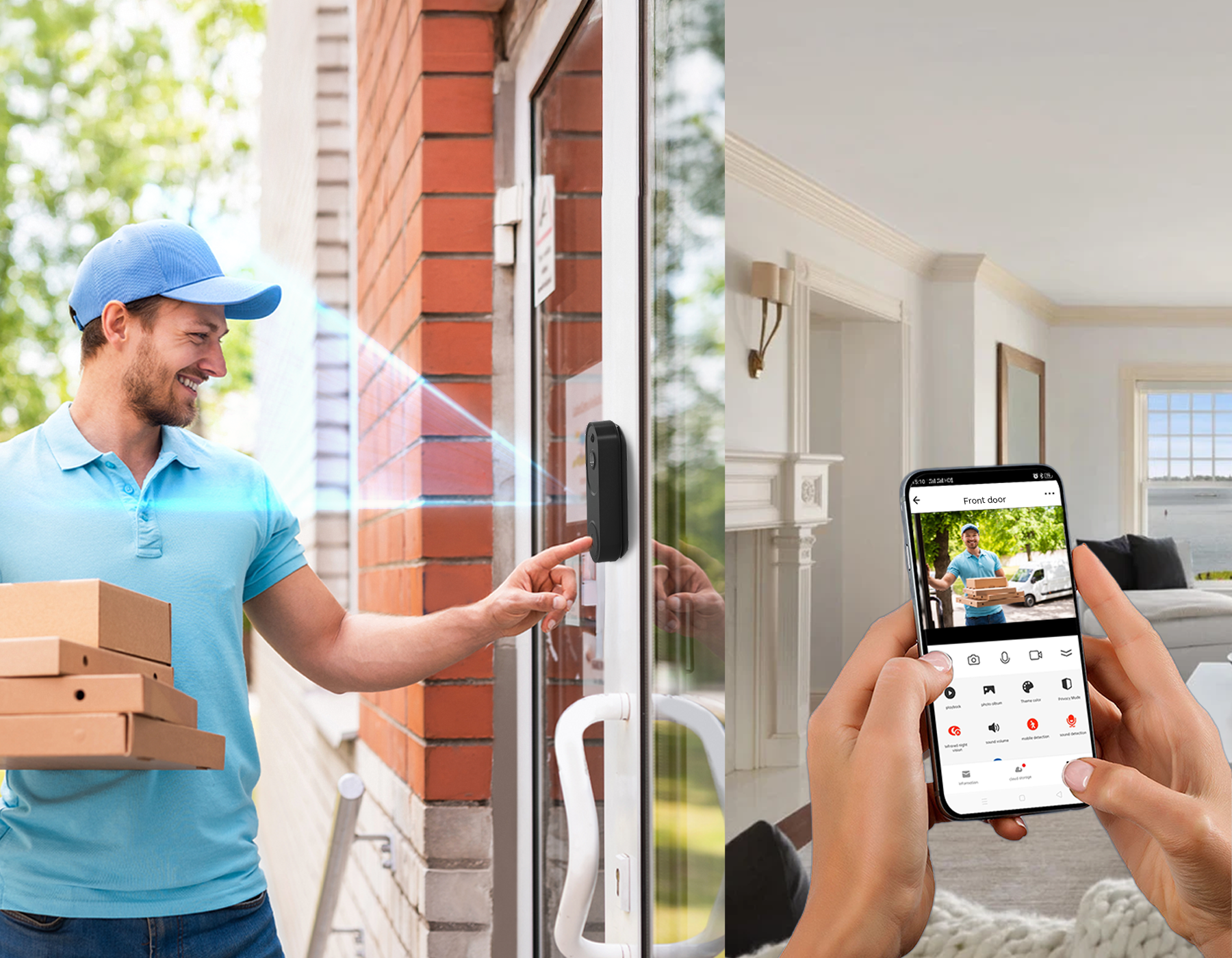 Praxia smart dörrklocka använder en stabil trådlös WiFi-anslutning. Detta gör installationen enkel utan behov av komplicerad kabeldragning och låter dig smidigt koppla den till din telefon. Få live-vy, prata med besökare och kontrollera aviseringar – allt direkt från din smartphone.