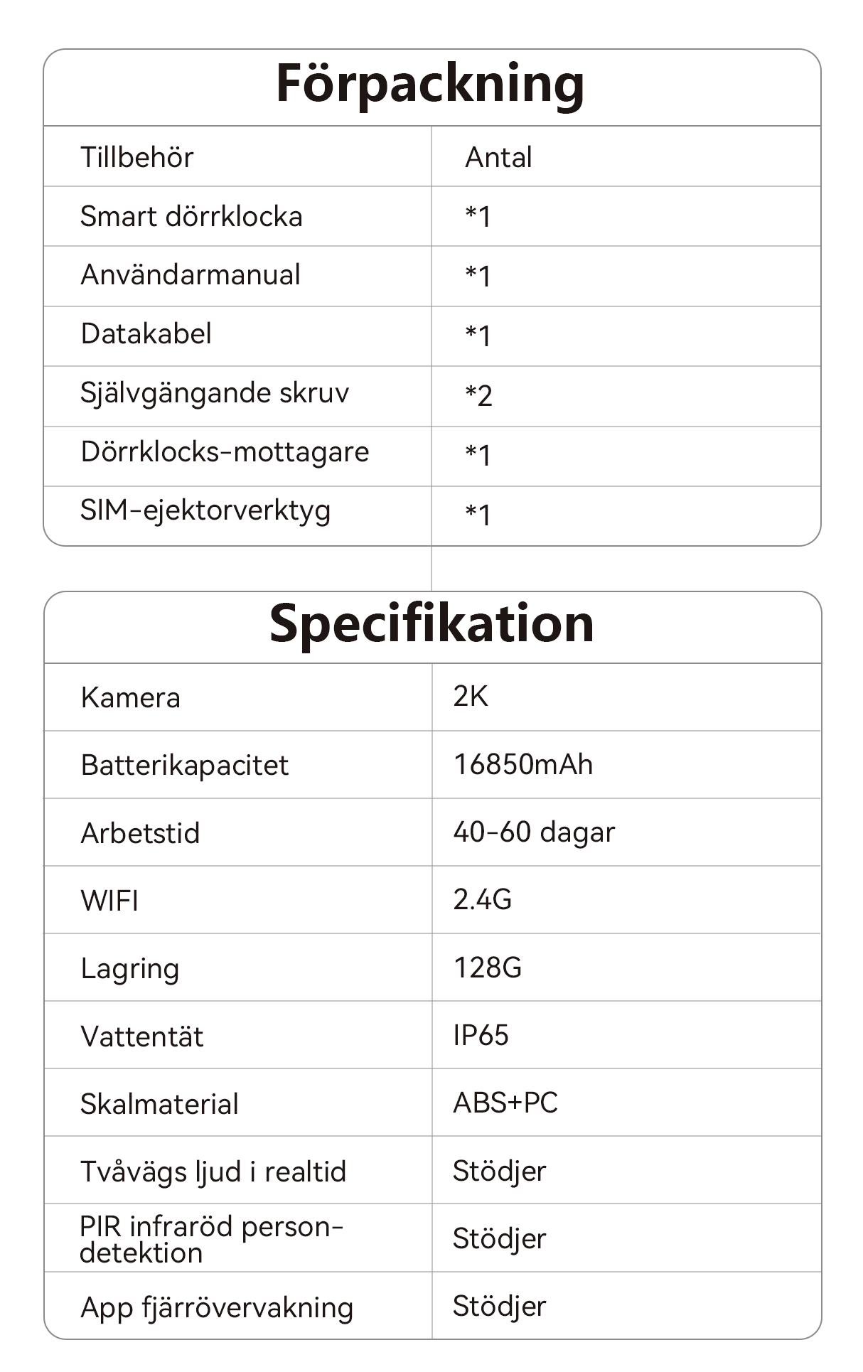 - Smart säkerhet – Särskiljer intelligent mellan olika besökare och skickar endast aviseringar vid viktiga händelser, vilket skyddar din familjs trygghet.